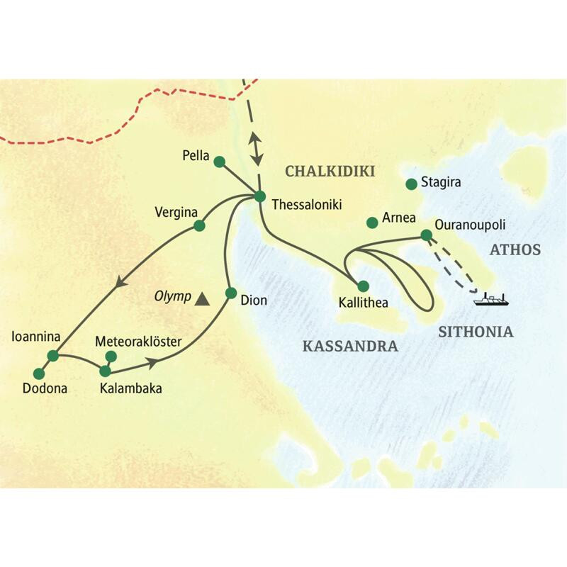 Nur bei dieser Reise: die Halbinsel Chalkidiki mit einer Bootsfahrt am Berg Athos