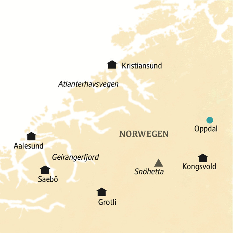 Ihre HotelsDie erste und letzte Nacht dieser Reise verbringen wir im erst jüngst komplett renovierten Thon Hotel Aalesund, das unmittelbar am inneren Hafen im Herzen der Jugendstilstadt liegt. Freuen Sie sich auf 150 komfortable Zimmer im für die Thon-Hotelgruppe typischen farbenfrohen Stil - und auf ein hervorragendes Frühstücksbuffet, das zwischen Braunkäse, norwegischen Marmeladen, mariniertem Hering und Lachs keine Wünsche offenlässt, während Ihre Blicke übers Wasser streifen. Beim Reisetermin 8.8. übernachten Sie alternativ in Aalesund beide Male im Hotel Scandic Parken, einem gepflegten 173-Zimmer-Hotel am Fuße des Hausberges Aksla und zugleich im Herzen der Innenstadt gelegen.