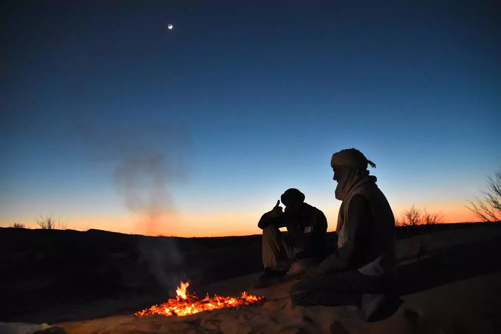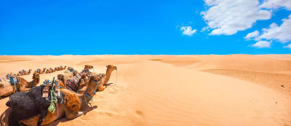 7. - 8. Tag: KamelsafariSanft schaukeln wir auf unseren Kamelen ca. 5 Stunden pro Tag hinaus in die Sahara. Die Weite der Dünen, Abendessen am Lagerfeuer und eine Übernachtung im Beduinenzelt unter überwältigendem Sternenhimmel werden zum unvergesslichen Erlebnis. Zeltübernachtung im Bushcamp bei Tenben und Hotelübernachtung in Douz. (2 x F, 2 x M, 2 x A)
