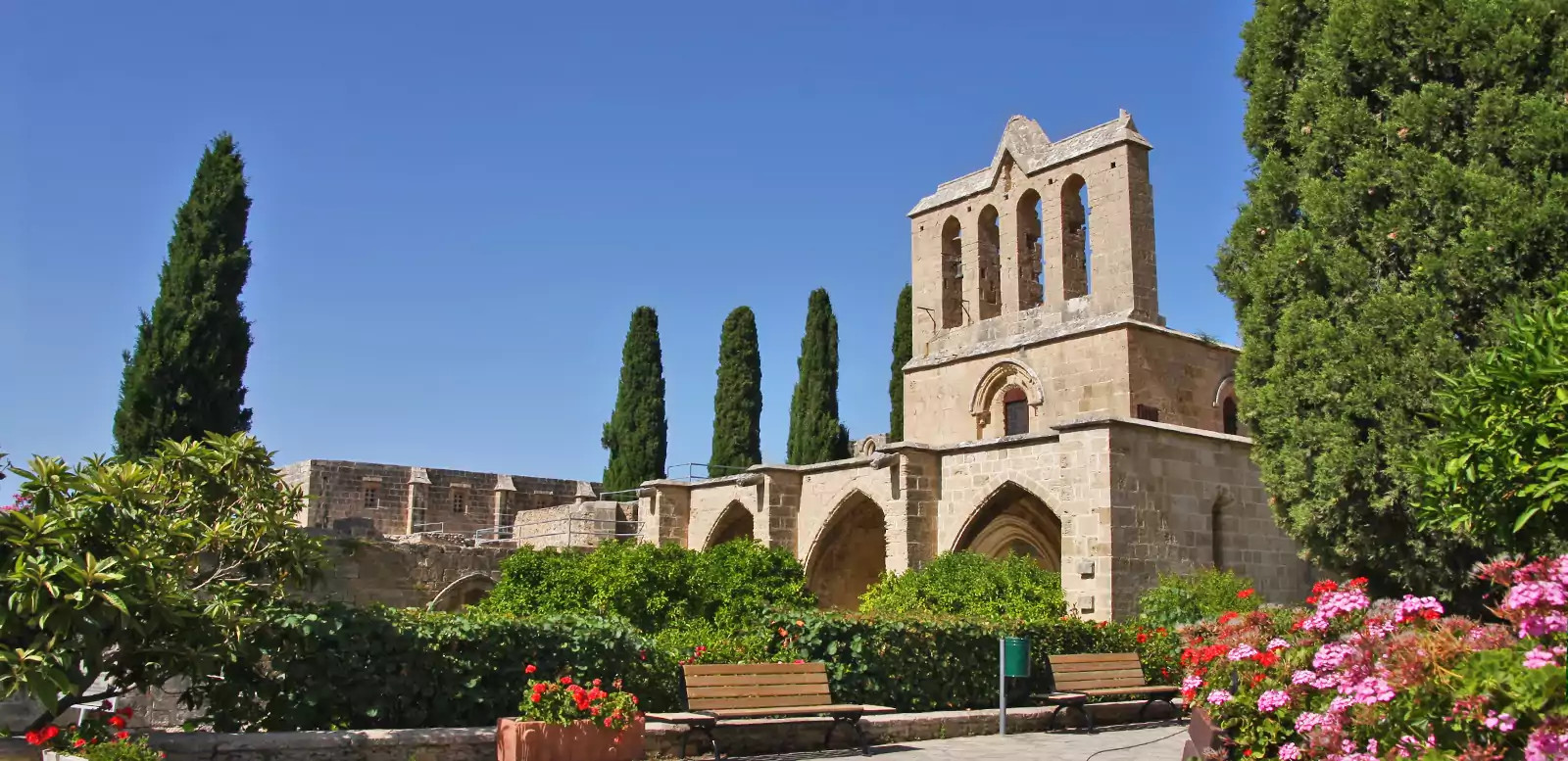 3. Tag: Verfallene WaldklösterAuf schattigen Waldpfaden geht es auf und ab durch die herrliche Landschaft des Pentadaktylos-Gebirges zu den Ruinen des Plataniotissa-Klosters. Spärlich sind die Mauerreste, ganz im Gegensatz zu dem armenischen Kloster Sourp Magar, das wir später erreichen. Bis 1974 wurde es von armenischen Christen genutzt, heute ist es mit seinen Obstbäumen eine bunte Oase im dichten Grün des Waldes (GZ: 3 1/2 Std., + 180 m, - 230 m). Die Rückfahrt unterbrechen wir in dem pittoresken Örtchen Bellapais und genießen eine Pause unter dem „Baum des Müßiggangs“.