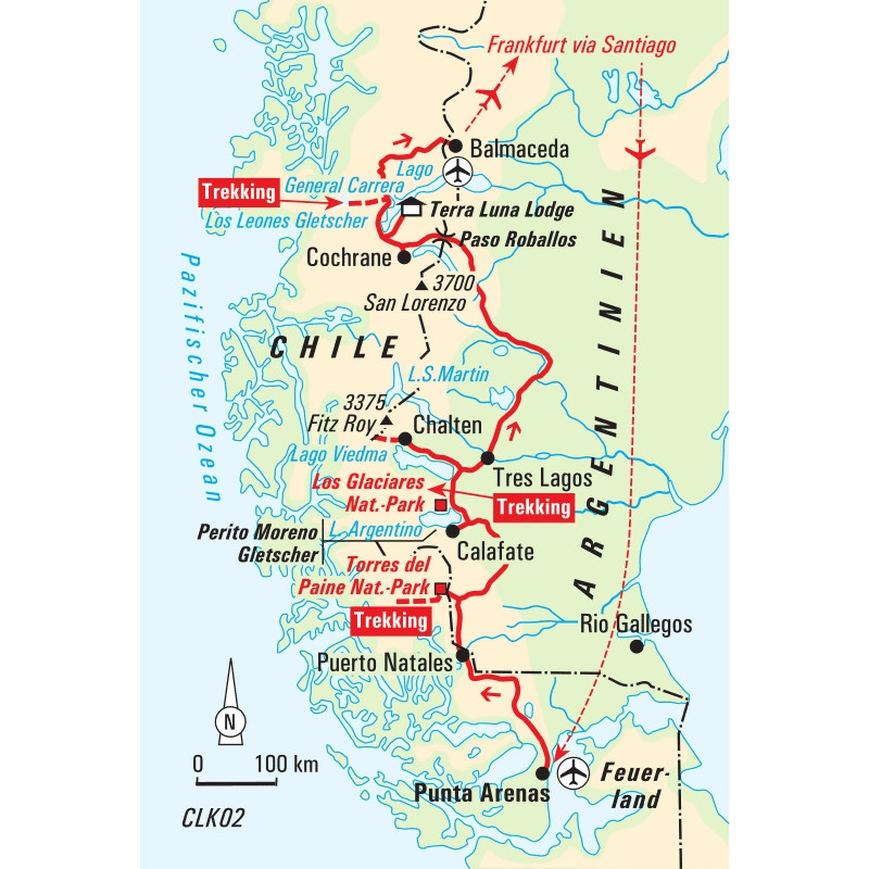 - Lokale Hauser-Reiseleitung ab Punta Arenas bis Balmaceda<br>Linienflug mit LATAM (Economy, Tarifklasse N) von Frankfurt nach Santiago De Chile und zurück, nach Verfügbarkeit<br>Inlandsflug ab Santiago de Chile nach Punta Arenas<br>Inlandsflug ab Balmaceda nach Santiago de Chile<br>Förderung eines Klimaschutzprojektes von atmosfair<br>Flug-/Sicherheitsgebühren (ca. 235 €)<br>Rail&Fly-Fahrkarte ab/bis deutsche Grenze<br>Übernachtung 6 x in Hotels, 3 x in einer Lodge (Gemeinschaftsbad), 1 x in einer Estancia (Mehrbettzimmer + Gemeinschaftsbad) und 9 x in Zelten<br>19 x Frühstück, 18 x Mittagessen, 14 x Abendessen<br>Eintrittsgebühren lt. Programm<br>Reisekrankenschutz<br>