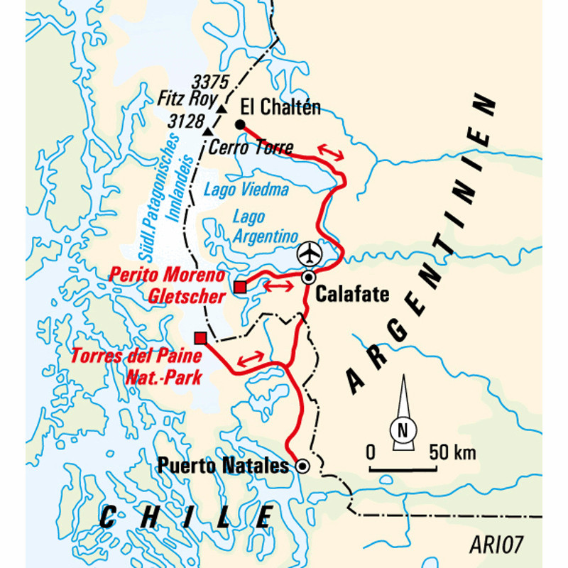 Trekkingreise durch die Nationalparks in Argentinien und ChileRaue Wildnis, endlose Weite und Naturgewalten zum Greifen nah – Patagonien ist kein Ort, den man besucht. Es ist ein Erlebnis, das man tief in sich aufnimmt. Zwischen windgepeitschten Steppen und majestätischen Andengipfeln folgen Sie dem legendären W-Trek im Torres-del-Paine-Nationalpark, durchqueren Gletscherlandschaften und wandern vorbei an türkisblauen Seen und mächtigen Granittürmen. Im charmanten Bergdorf El Chaltén – dem "Trekking-Mekka" Argentiniens – erwarten Sie spektakuläre Wanderungen zu den Füßen der ikonischen Gipfel Fitz Roy und Cerro Torre. Und bevor Sie all das erleben, beginnen Sie Ihre Reise mit dem atemberaubenden Perito-Moreno-Gletscher, dessen gewaltige Eiswand mit einem unvergesslichen Knacken und Bersten vor Ihnen zum Leben erwacht. Abenteuer, Stille, Weite – Patagonien berührt.