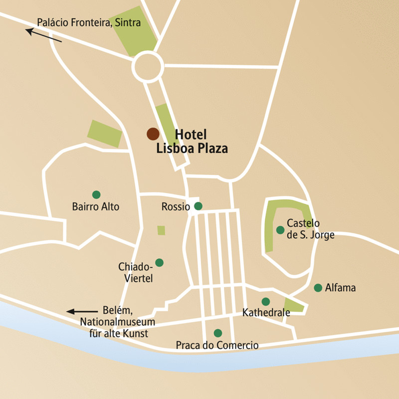 Hotel Lisboa Plaza****Sehr zentral, aber dennoch ruhig in einer Nebenstraße der Avenida da Liberdade liegt Ihr Hotel. Besonderer Wert wurde auf seine ansprechende Inneneinrichtung in der Art eines Grandhotels gelegt. Die 94 Zimmer sind im traditionellen portugiesischen Stil eingerichtet und verfügen über alle modernen Annehmlichkeiten wie Klimaanlage, Sat.-TV, WLAN (kostenfrei), Safe, Minibar und Föhn. Die Einzelzimmer sind Doppelzimmer zur Alleinbenutzung. Im Restaurant erwartet Sie morgens ein reichhaltiges Frühstück. Es gibt eine Kamin-Lounge im regionalen Stil mit vielen Sofas sowie eine Dachterrasse mit Aussicht über Lissabon und einen Fitnessraum.