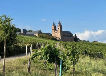 3. Tag: Schlösser und KlösterKurze Fahrt mit der Bahn nach Oestrich-Winkel. Wir steigen gemächlich zum Johannisberg auf. Der Weinberg ist seit Jahrhunderten bekannt für seinen Riesling, den wir im Hof des schönen Schlosses Vollrads probieren können (fakultativ). Durch Weinberge und dann auf dem Philosophenweg wandern wir hinab zum Kloster Marienthal. Die mächtige Abtei St. Hildegard, oberhalb von Rüdesheim, liegt ebenfalls auf unserem Rückweg (GZ: 5 Std., +/- 250 m).