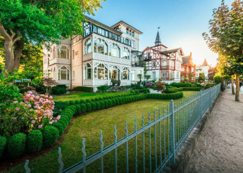 Hotel: Das Vier-Sterne-Vju-Hotel-Rügen (133 Zimmer) besteht aus Haupthaus und den Dependancen „Villa Fortuna“ und „Villa Felicitas“. Das Hotel mit Geschichte öffnete bereits im Jahre 1882 seine Pforten. Es besticht durch seine moderne, nordisch schlichte Architektur und zugleich durch eine ungezwungene Atmosphäre. Das Hotel verfügt über einen großzügigen Wellnessbereich mit (Meerblick-)Sauna und Innenpool. Drei Terrassen, zwei Restaurants und eine Lounge sowie ein Aussichtsturm runden das Hotelangebot ab. Zimmer: Wir wohnen in großzügigen Doppelzimmern (ca. 22 m²) und Doppelzimmern zur Alleinnutzung (ca. 16 m² mit Queensize Bett) in den Dependancen. Die Zwei-Bett-Zimmer mit separaten Betten befinden sich im Haupthaus. Alle Zimmer sind in natürlichen Farben gehalten und verfügen über einen Eingangsbereich mit Garderobe, Flatscreen-TV, Radio, Telefon, Safe und WLAN. Gegen Aufpreis sind auf Anfrage Zimmer mit Balkon und/oder Seeblick möglich. Verpflegung: reichhaltiges Frühstücks- und Abendbüfett oder 3-Gänge-Menü Lage: Das Hotel liegt nur wenige Gehminuten vom Ortskern von Göhren entfernt. Eingebettet in eine parkähnliche Anlage befindet es sich auf dem höchsten Punkt einer ins Meer ragenden Landzunge. Von hier hat man einen überwältigenden Blick auf die Insel und das Meer. Den Küstenwanderweg erreicht man nach wenigen Gehminuten.
