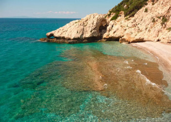 12. Tag: TraumbuchtenDurch dschungelartige Vegetation verläuft unser Weg durch eine Schlucht hinauf zum Dorf Tsourlei. Der Waldpfad endet beim Dorf Nikoloudes, bevor es immer bergab geht mit wunderbaren Blicken über die Nordwestküste, die wir schließlich bei den beiden traumhaften Buchten Megalo und Mikro Seitani erreichen (GZ: 4 1/2 Std., +/- 450 m).