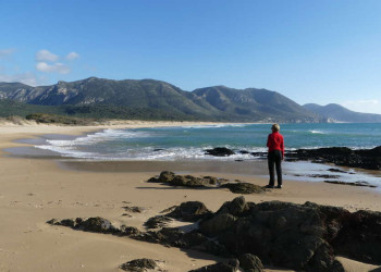 Wanderreise in die abgelegeneren Regionen im Süden der MittelmeerinselDas kristallklare Wasser funkelt in der aufgehenden Sonne. Wie kleine Smaragde tanzen die Lichtstrahlen auf den Wellen, bevor sie im weißen Sand vor der Küste Sardiniens versinken. Zwischen den kargen Steinen blühen pinke und gelbe Blüten und geben der herben Landschaft eine liebliche Note. Im Hinterland streifen Tierherden gemächlich über die Hochflächen, am Wasser tummeln sich unzählige Seevögel auf der Suche nach Nahrung. Weite Ebenen und dichte Wälder, sanfte Hügel und bizarre Felsformationen, einsame Buchten und türkis glitzerndes Wasser - Sardinien hat viele Gesichter und erwartet uns mit einer wildromantischen Landschaft. Wer sich speziell für die noch weniger bekannten Ecken im Süden der Insel interessiert, ist auf dieser Reise genauso richtig, wie bereits Sardinien-Erfahrene. Über einsame Wege, auf alten Köhlersteigen und holprigen Maultierpfaden wandern wir durchs wilde Hinterland und lassen uns auch die idyllischen Badebuchten nicht entgehen. Wir erklimmen Sardiniens höchsten Gipfel und genießen von oben den Blick über die einsame Bergwelt, wir wandern über das Adjacent Plateau auf den Monte Arcuentu und machen Rast mit Blick auf das Meer. Außerdem statten wir den Flamingos in den Salzseen von Cagliari einen Besuch ab und machen eine Stippvisite in den Tempeln von Antas, im Tal des gleichnamigen Flusses. In familiären Unterkünften genießen wir das typisch-sardische Flair und die schmackhafte sardische Küche - Rotwein inklusive. Eine bunte Palette an Kultur- und Naturschätzen wartet nur darauf, endlich entdeckt zu werden.