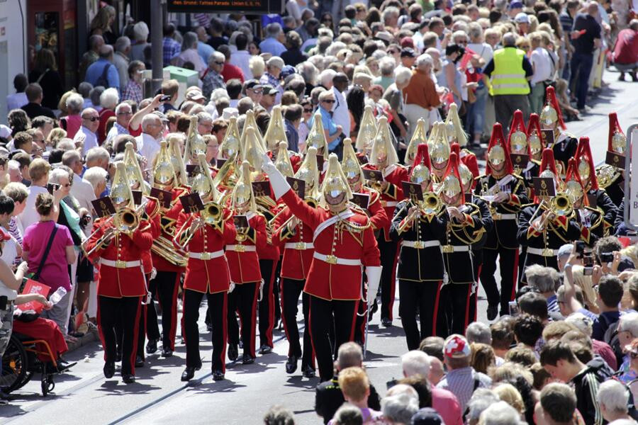 4 Tage Basel Tattoo mit dem kultimer: Erleben Sie Basel im Zeichen internationaler Militärorchester, Marching- und Pipebands.