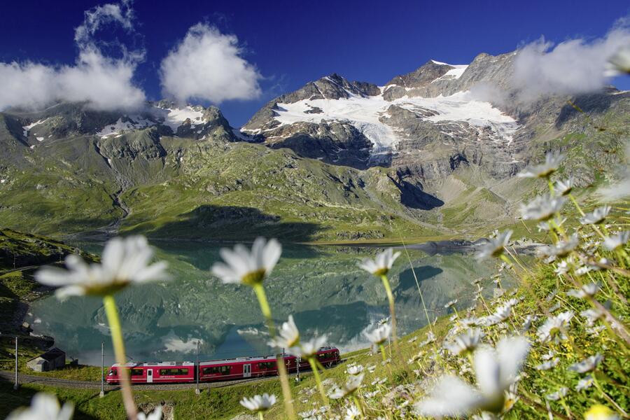 7 Tage Schweiz für Bahnliebhaber: Albula-Linie, Bernina Express und Gotthard-Panorama-Express. St. Moritz, Lugano, Vierwaldstätter See und Pilatus.
