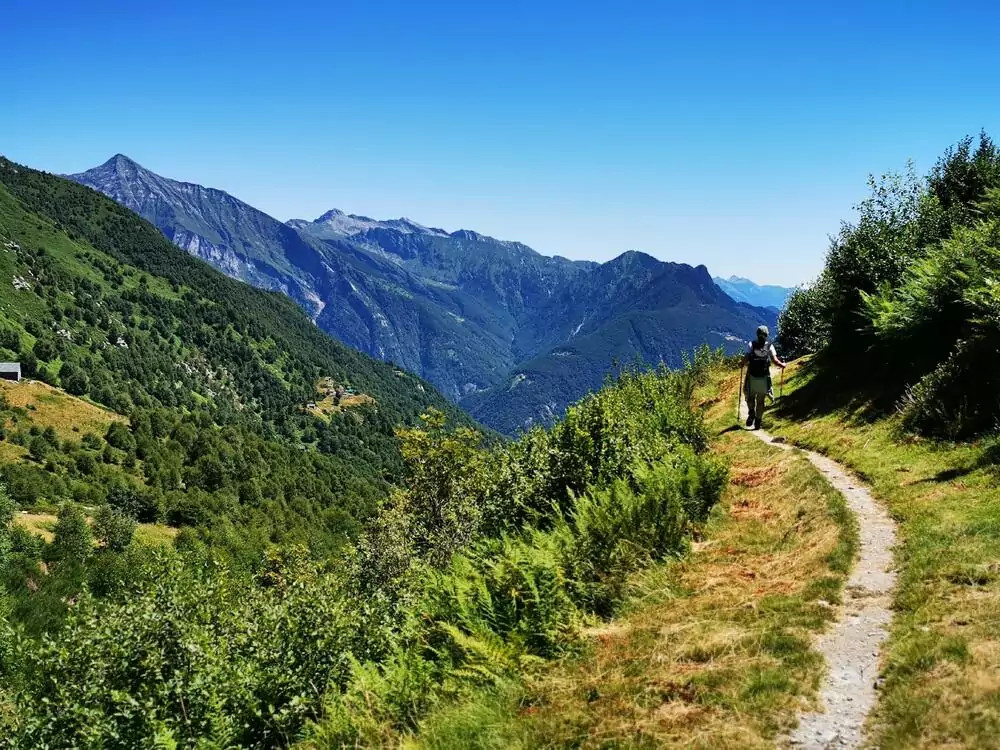 6. Tag: Gipfelglück über dem Lago MaggioreMit dem Zug erreichen wir Locarno, malerisch am Lago Maggiore gelegen. Von dort bringt uns die Standseilbahn hinauf zum Wallfahrtsort Madonna del Sasso. Weiter geht’s mit Kabinenbahn und Sessellift bis zur Cimetta auf 1.671 m – der Blick auf See und Berge ist bereits jetzt spektakulär. Doch es geht noch höher: Ohne große Anstrengung erklimmen wir die Cima della Trosa (1.869 m), wo uns ein atemberaubendes 360°-Panorama erwartet, mit Blick bis zu den schneebedeckten Viertausendern der Alpen. Der Abstieg führt über blühende Almen und durch schattige Wälder zu einer perfekt gelegenen Einkehrmöglichkeit. Mit der Gondelbahn fahren wir wieder zurück – was für ein Tag (GZ: 3 1/2 Std., + 220 m, - 430 m)!