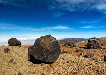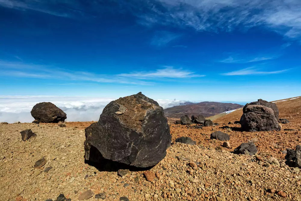 6. Tag: Teide mal andersDie Huevos del Teide, riesige Lavakugeln, säumen unseren Weg zur Montaña Blanca (GZ: 3 1/2 Std., + 240 m, - 530 m).