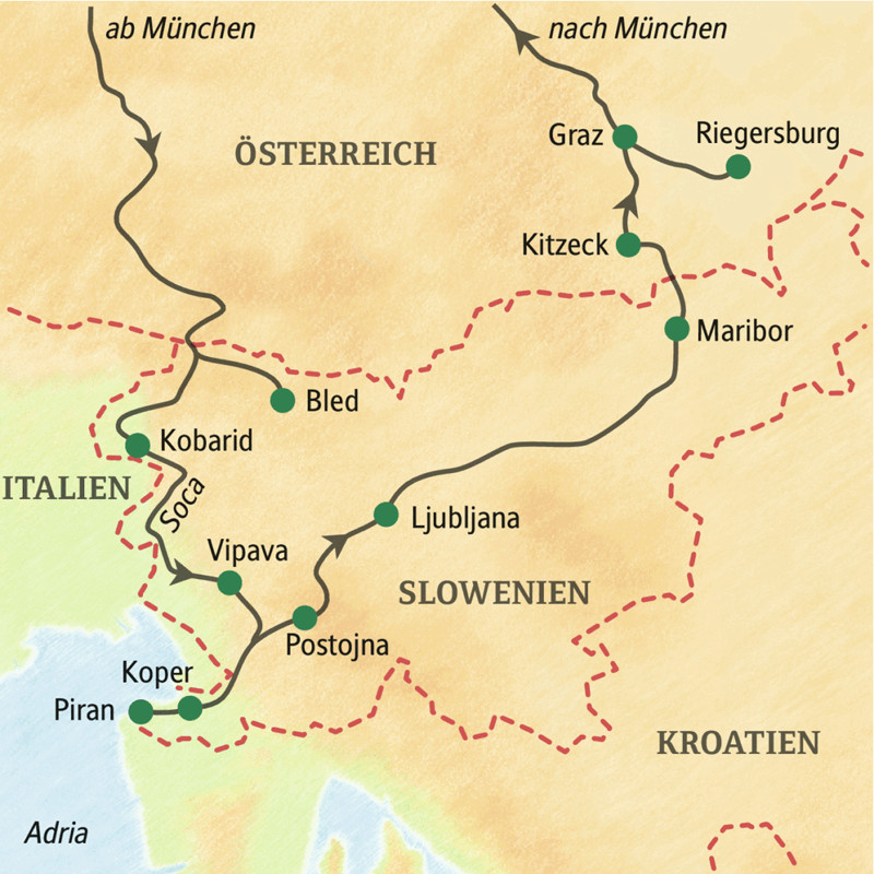 Kultur, Geschichte und Kulinarik auf einer abwechslungsreichen Rundreise durch Slowenien und die Steiermark im Reisebus ab München