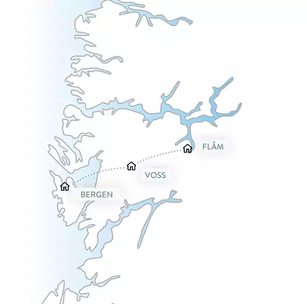 So wohnen wirHygge in der City, am See und am Fjord - Unsere 9 Übernachtungen verteilen sich auf nur 3 Standorte. Wir starten in Bergen, verbringen dann 3 Nächte in Voss direkt am See und 3 Nächte am Fjord in Flåm.