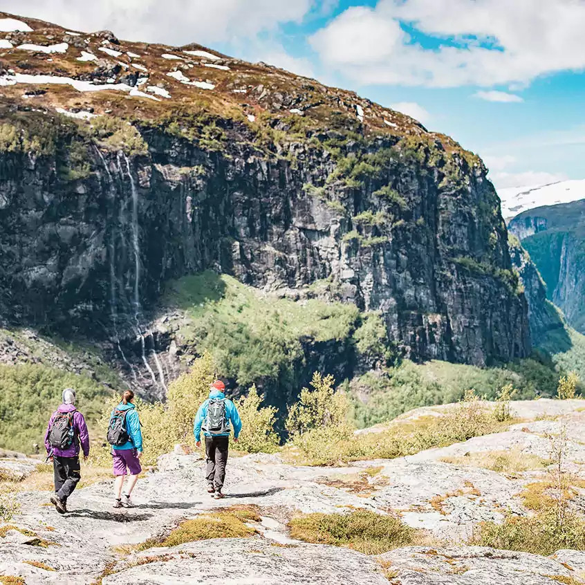 Tag 8: 30.000 Schritte durchs wilde AurlandsdalenHeute tauchen wir tief in das Herz des Aurlandsdalen ein, ein Ort, wo die Zeit stillzustehen scheint. Auf den Spuren alter Gehöfte, die Geschichten aus dem Mittelalter flüstern, lassen wir uns von der wilden Schönheit des Tals verzaubern. Die lange Tour fordert uns richtig heraus und belohnt gleichzeitig mit malerischen und spektakulären Panoramen (GZ: ca. 5 1/2 Std., + 300 m, - 1.000 m, Trittsicherheit sowie in einigen kurzen Passagen Schwindelfreiheit erforderlich. Bei Bedenken sprich deinen Guide bitte vor der Tour an.).