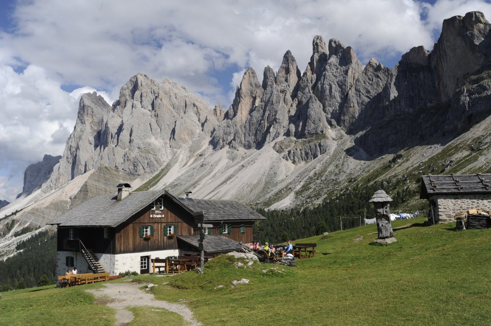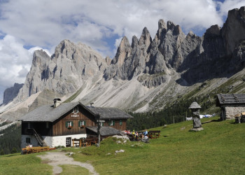 Wir treffen uns um 9:00 Uhr an der Talstation der neuen Standseilbahn Raschötz (Resciesa) in St. Ulrich im Grödnertal. Mit modernster Technik überwinden wir die ersten 800 Höhenmeter und beginnen unsere Wanderwoche auf der Raschötz-Hochfläche mit Blick auf die schrägen Zacken der Seceda. Die anderen Gipfel der Geisler-Gruppe spitzen schon dahinter hervor. Ständig dieses bekannte Fotomotiv vor Augen, wandern wir über flache Almwiesen zu unserer Mittagsrast, der erst kürzlich renovierten Broglesalm. Immer noch gemütlich geht es durch den Zirbenwald vor den markanten Nordwänden der Geisler über den Adolf-Munkel-Weg. Eine steile Geröllrinne führt uns zur Mittagscharte. In sauber angelegten Spitzkehren führt der Weg hinauf, wo man eigentlich kein Durchkommen vermutet. Wir spüren die Kraft dieser einzigartigen Natur zwischen den Wänden der Dolomiten bevor es zuerst steil und dann über sanfte Almwiesen unserem Tagesziel, der Regensburger Hütte entgegen geht.