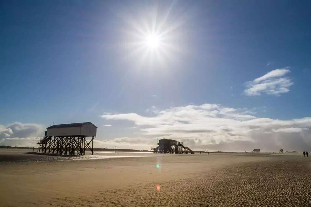 3. Tag: Auf nach St. Peter-OrdingHeute starten wir unsere Wanderung in St. Peter-Ording (GZ: 3 Std., kaum Höhenunterschiede). Kilometerlanger und sehr breiter Sandstrand, eine einzigartige Dünenlandschaft, Pfahlbauten – eine unglaubliche Naturkulisse. Anschließend haben wir noch etwas Zeit für einen Bummel auf der Promenade, bevor es wieder zurück nach Tönning geht.