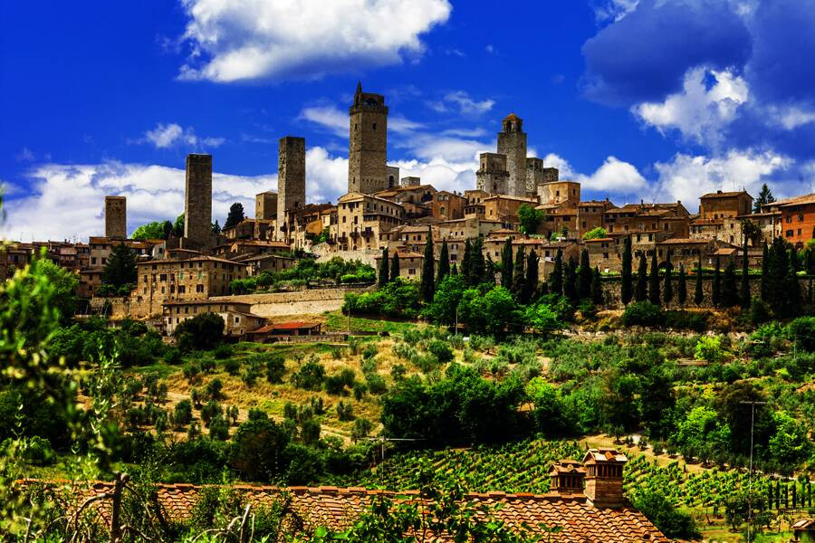 San Gimignano, Hotel Leon Bianco***Mitten im Zentrum von San Gimignano liegt unsere zweite Unterkunft, ein Palazzo aus dem 11. Jahrhundert. Das schöne Hotel wird seit drei Generationen liebevoll von der Familie Galgani geführt. Bei schönem Wetter können Sie das Frühstück auf der Terrasse mit wundervollem Ausblick genießen. Die 26 Zimmer bieten die perfekte Kombination aus traditionellen Elementen, wie Holzdecken oder Terracottaböden, und modernen Annehmlichkeiten. Sie sind mit Sat.-TV, WLAN (kostenfrei), Klimaanlage, Safe, Minibar und Föhn ausgestattet.