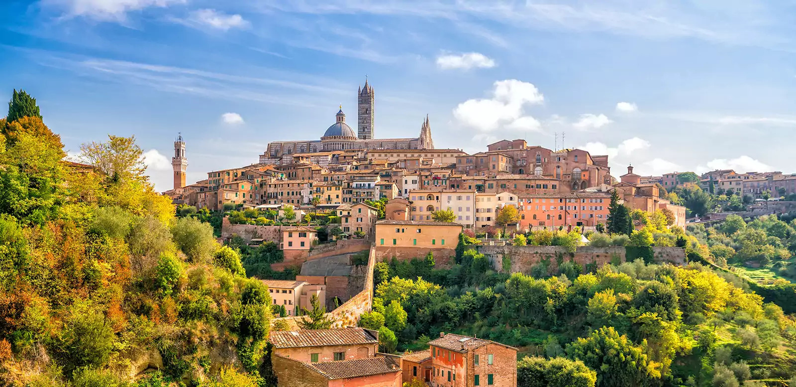 7. Tag: Lebendiges MittelalterSiena ist wie ein Freiluftmuseum mit seinen mittelalterlichen Gassen, den vielen Kunstschätzen und dem mit Marmor verkleideten Dom. Während der Stadtführung besuchen wir natürlich auch die Piazza del Campo, Italiens berühmtesten Platz mit einer Kulisse aus alten Stadtpalästen und dem Rathaus mit seinem 102 m hohen Turm. Der Nachmittag steht ganz zu unserer freien Verfügung.