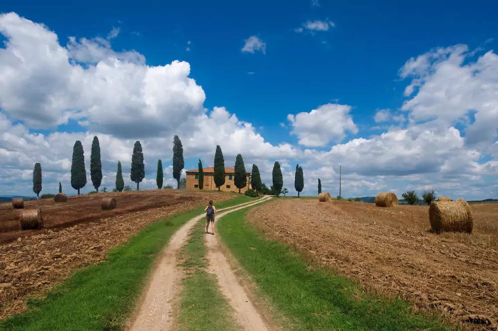 4. Tag: Die Weine des ChiantiDas Chiantigebiet mit seinen idyllischen Hügeln und sanft geschwungenen Tälern, mit schlanken Zypressen, kleinen Wäldern, verschwiegenen Landgütern und intensiv genutzten Weinbergen ist die Landschaft, die man gemeinhin mit der Toskana in Verbindung bringt. Unsere Wanderung von Passo dei Pecorai nach Greve führt mitten hindurch (GZ: 3 1/2 Std., +/- 300 m).