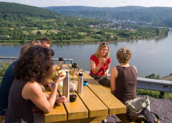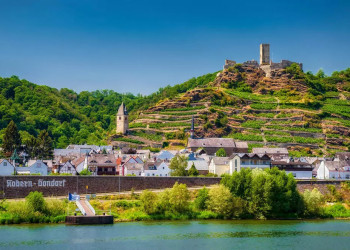4. Tag: PanoramawanderungGrandiose Panoramablicke in das Moseltal sind auf dieser Wanderung garantiert. Unsere Tour beginnt an der Kirche in Oberfell. Nach dem Aufstieg in einem weinbewachsenen Hang, bieten sich bereits die ersten großartigen Ausblicke. Durch grüne Wälder und blühende Wiesen gelangen wir zur Hütte am Dickenberg, die zur gemütlichen Rast einlädt. Entlang des Alkener Baches wandern wir weiter bis die Burg Thurant in unser Blickfeld rückt. Ein enger Pfad führt über eine Felsklippe weiter zur historischen St. Michaelskirche und in den schmucken Weinort Alken (GZ: 3 1/2 Std., + 250 m, - 280 m).
