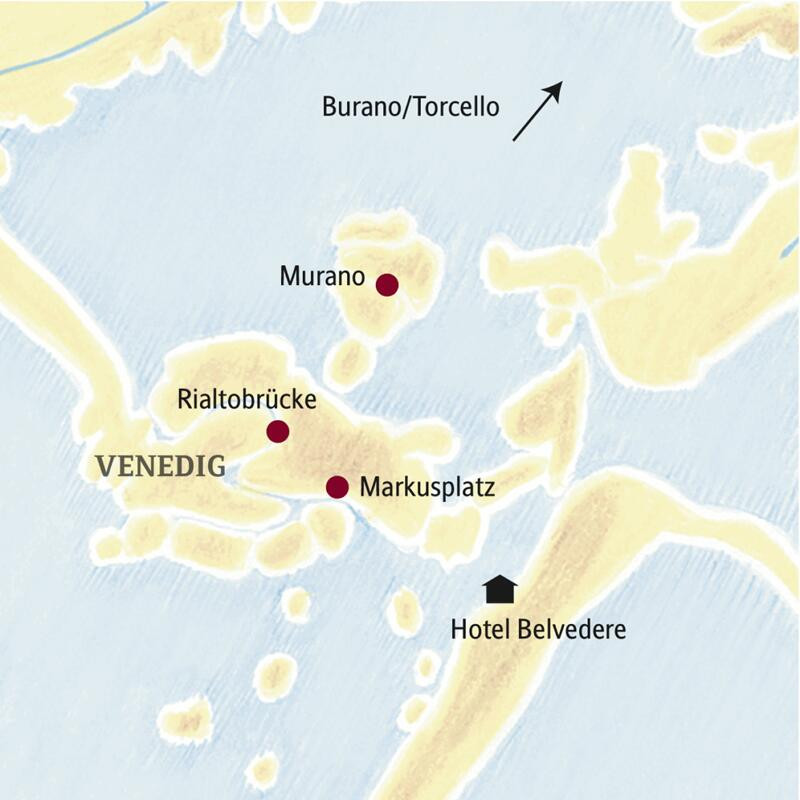 Hotel Belvedere***Das seit mehreren Generationen von derselben Familie geführte Haus liegt auf dem Lido, nur wenige Schritte von der Anlegestelle der Linienboote entfernt (Fahrtzeit zum Markusplatz ca. 20 Min.). Die 30 Zimmer sind freundlich gestaltet und verfügen über kostenfreies WLAN, Klimaanlage, Sat.-TV, Safe und Föhn. Das Frühstück kann auch auf der kleinen Terrasse eingenommen werden, das Restaurant bietet venezianische Spezialitäten und klassische italienische Gerichte. Vom Hotel aus führt die Hauptflaniermeile des Lidos mit vielen Eisdielen und Geschäften zum langen, flachen und feinsandigen Strand.