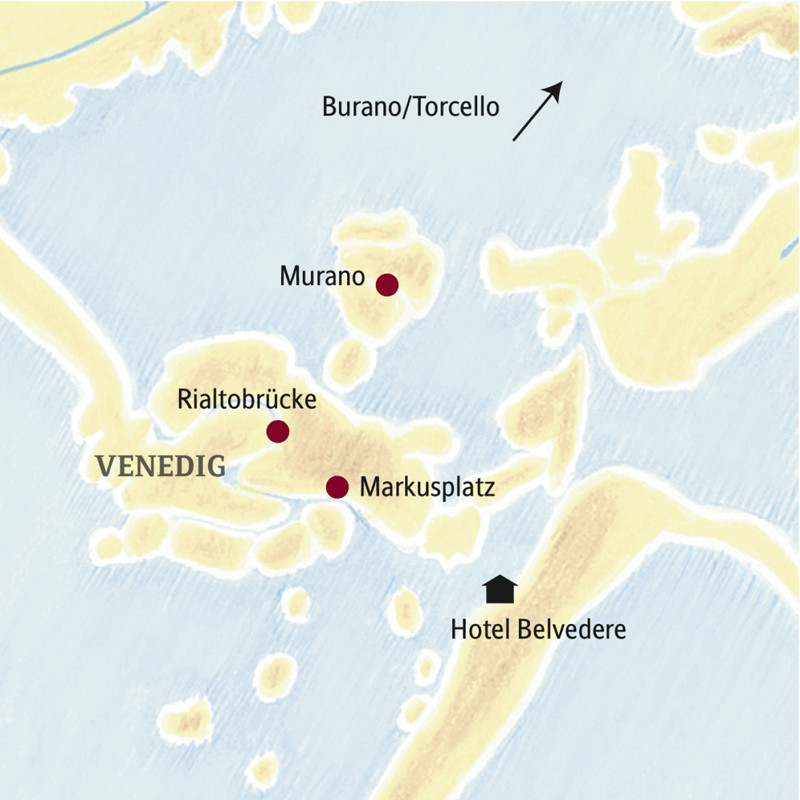 Hotel Belvedere***Das seit mehreren Generationen von derselben Familie geführte Haus liegt auf dem Lido, nur wenige Schritte von der Anlegestelle der Linienboote entfernt (Fahrtzeit zum Markusplatz ca. 20 Min.). Die 30 Zimmer sind freundlich gestaltet und verfügen über kostenfreies WLAN, Klimaanlage, Sat.-TV, Safe und Föhn. Das Frühstück kann auch auf der kleinen Terrasse eingenommen werden, das Restaurant bietet venezianische Spezialitäten und klassische italienische Gerichte. Vom Hotel aus führt die Hauptflaniermeile des Lidos mit vielen Eisdielen und Geschäften zum langen, flachen und feinsandigen Strand.