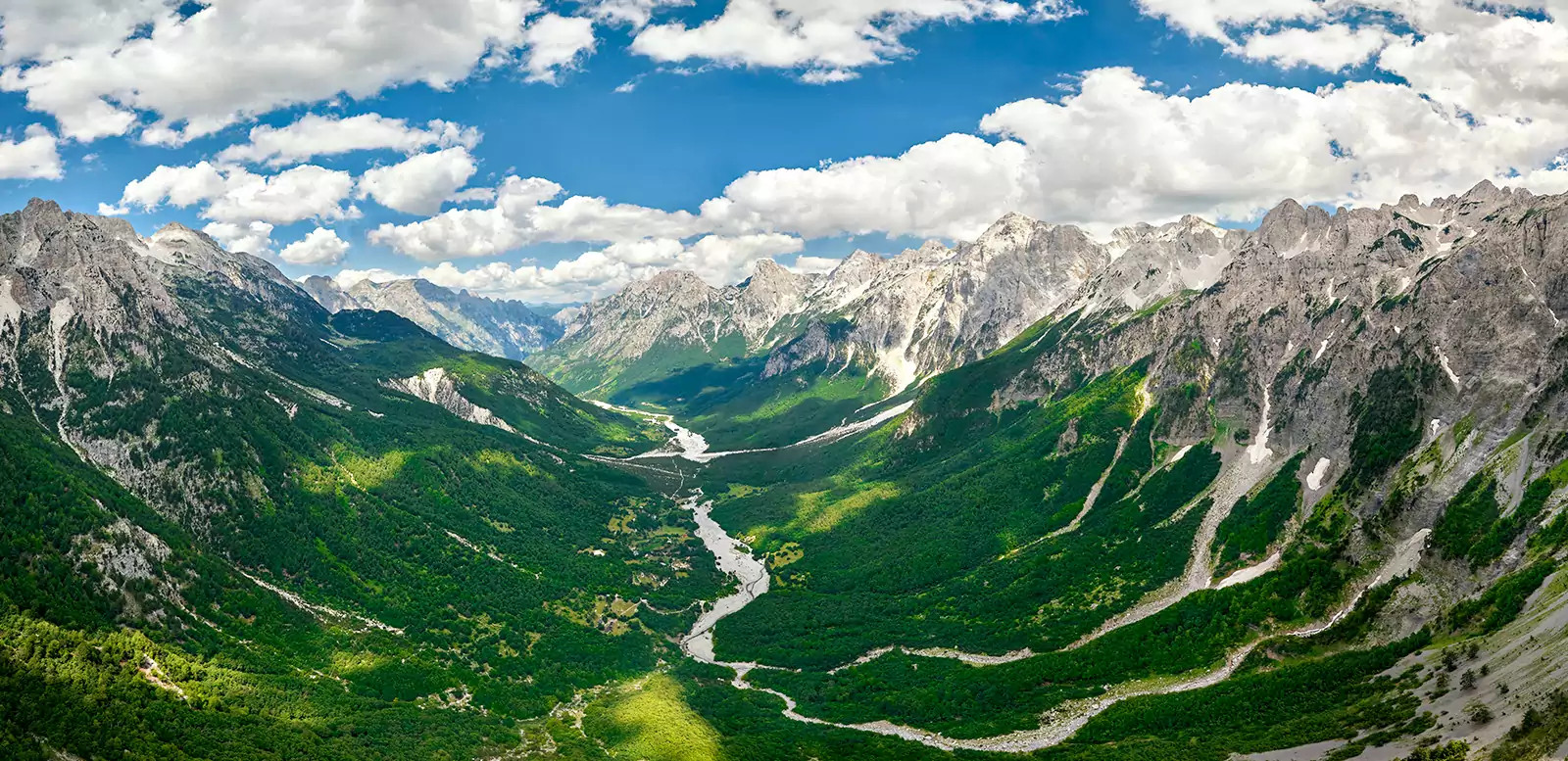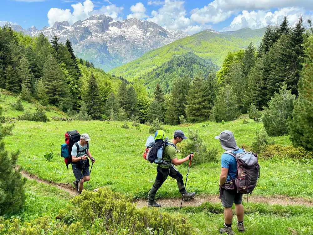6. Tag: Ins schönste Tal AlbaniensAbschied von Dobërdoll. Ein Wanderpfad führt uns bergauf zum Berggasthaus Balcina, anschließend Aufstieg zum Aljuci-Pass. Nun folgt der Abstieg zum Vranica-Pass und zur Schotterstraße nach Cerem. Nach dem Transfer ins Valbona-Tal genießen wir den Nachmittag im wohl schönsten Bergtal Albaniens (GZ: 6 1/2 Std., + 650 m, - 1.250 m, 1 Ü in Valbona).