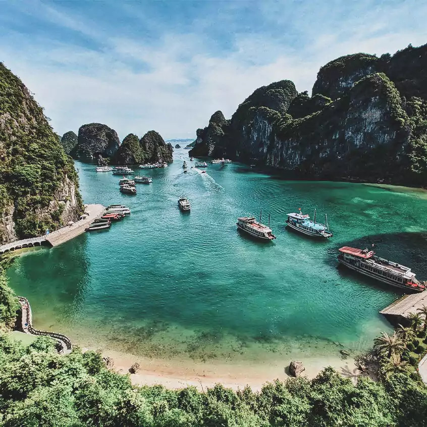 Tag 7: Halong-Bucht: smaragdgrüne Wellen und Geschichten der FelseHeute geht’s zur legendären Halong-Bucht! Schon die Fahrt dorthin ist ein Erlebnis für sich – grüne Felder, soweit das Auge reicht, schmiegen sich wie ein lebendiger Teppich an die Landschaft. An Bord des Bootes werden wir mit einem Willkommensdrink begrüßt und auf das bevorstehende Abenteuer eingestimmt. Langsam gleiten wir über die schimmernden, smaragdgrünen Gewässer, während die imposanten Kalksteinformationen wie ehrfürchtige Wächter um uns auftauchen. Jeder Fels scheint eine Geschichte zu erzählen, und du fragst dich: Welche Geheimnisse verbergen sich hier? Abends wartet ein Festmahl aus frischen Meeresfrüchten – der Geschmack der See, begleitet vom sanften Rauschen der Wellen und dem leisen Murmeln der Nacht. (F, M, A) WYLD OPTION: Kayak: Schnapp dir ein Kayak und entdecke die Halong-Bucht. Preis: kostenlos Dauer: ca. 1 Stunde