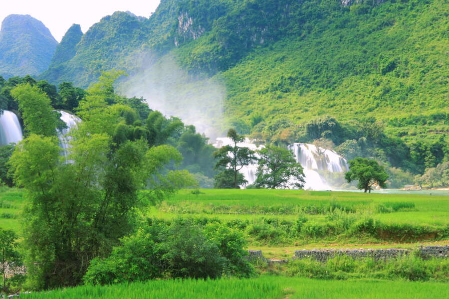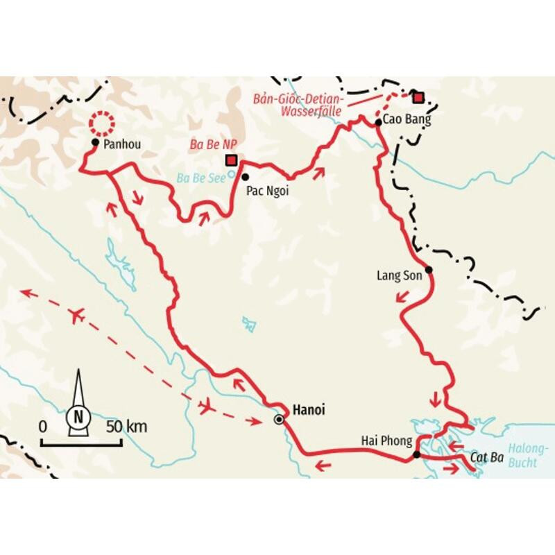 Trekkingreise durch die grüne Bergwelt im Nordosten VietnamsDichter Dschungel, sattgrünes Blätterdach und die Stille der Natur umgeben uns – doch es dringt noch ein anderes Geräusch zu uns durch, mit jedem Schritt hören wir es immer deutlicher, langsam lichtet sich der Wald und die Pflanzen geben den Blick frei auf rauschende Wassermassen die sich über mehrstufige Kaskaden ergießen: den beeindruckenden Bản-Giốc-Fällen. Umgeben von Reisfeldern und direkt an der chinesischen Grenze entdecken wir dieses abgelegene Juwel Vietnams. Neben der wuchernden Natur, den in steile Berghänge gebauten Reisterrassen und den tosenden Wasserfällen sind es vor allem die Menschen, die diese Region so besonders machen. Immer wieder tauchen wir tief ein in die Kultur und das Leben der verschiedenen Bergvölker. Wir sind zu Gast bei den Hmong und Dao, übernachten in traditionellen Stelzenhäusern und haben die Möglichkeit bei der Zubereitung der traditionellen Gerichte über die Schulter unserer Gastgeber zu blicken. Wir wandern im äußersten Nordosten des Landes bis zur chinesischen Grenze, trekken in der entlegenen Region Hoang Su Phi von Dorf zu Dorf und folgen schmalen Pfaden durch die Kalksteinlandschaft von Cao Bang. Mit dem Kajak erkunden wir die größte Insel der Halong-Bucht und per Boot gleiten wir über den mystischen Ba Ba See. Leuchtend grüner Bambuswald, goldgelbe Reisterrassen und farbenfrohe Trachten - mindestens genauso bunt und abwechslungsreich werden auch unsere Erinnerungen an diese Reise sein.