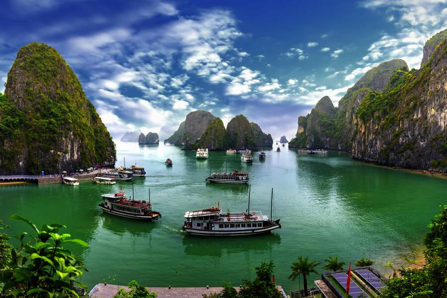 - Frühstück, ein Mittag- und ein Abendessen auf einem Halongschiff, ein Mittagessen bei einer Familie, ein Mittagessen und 5 Abendessen in landestypischen Restaurants