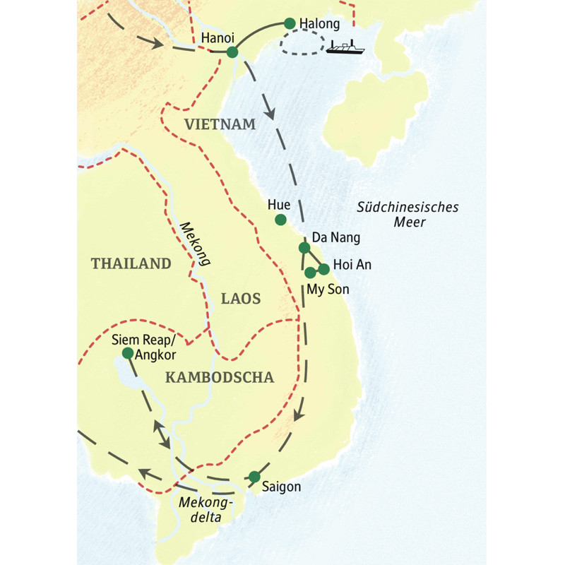 Vietnam ist längst der Shootingstar Südostasiens – spannend zu sehen, wie der Spagat zwischen Ho Chi Minhs Idealen und dem Wirtschaftswunder gelingt. Erleben Sie mit Hanoi und Saigon zwei Boomtowns zwischen Kolonialflair und futuristischen Glastürmen, aber auch einen Bootstrip in der Halongbucht, ein Meer von bunten Lampions in Hoi An und eine Wasserpuppenshow exklusiv für uns! In Kambodscha locken nicht nur die Wunder Angkors, die wir luftig-asiatisch mit Tuk-Tuks erfahren. Beim Besuch von Sozialprojekten kommen die Menschen des Landes zu Wort. Und auch der kulinarische Genuss gehört zu dieser kompakten Reise: Indochinas göttliche Küchen kosten wir in angesagten Restaurants.