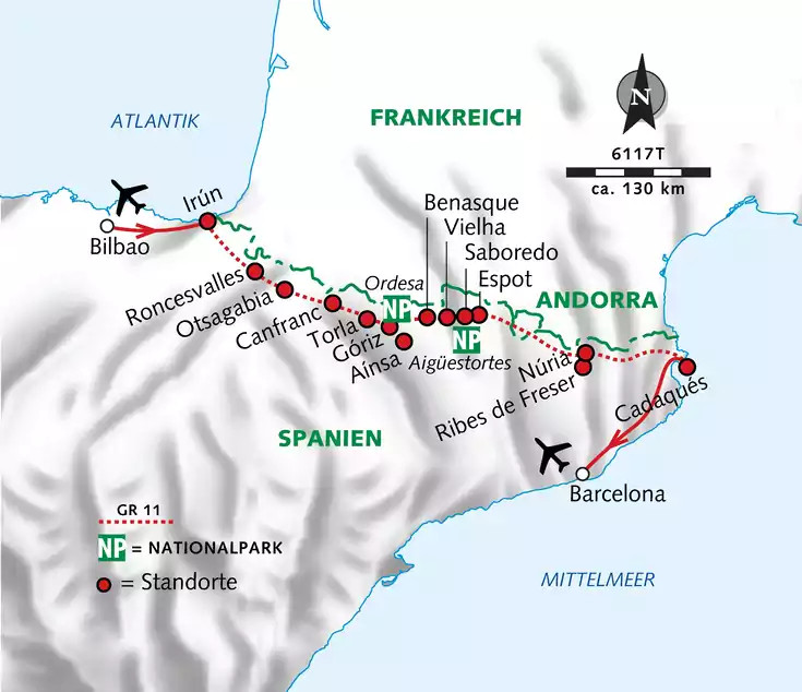 Tiefe Täler und imposante Gipfel, dazu verträumt gelegene Bergseen in absoluter Stille. In den kleinen Bergdörfern unterwegs scheint die Zeit stehen geblieben zu sein. Auf knapp 820 km Länge durchzieht der Fernwanderweg GR11 die atemberaubende Bergwelt des Grenzgebirges zwischen Frankreich und Spanien. Komm mit und erlebe auf ausgewählten Etappen den Wandel der Landschaften hautnah! Flankiert wirst du teils von den höchsten Gipfeln: Aneto, Maladeta und Monte Perdido. Nimmst du die Herausforderung an?