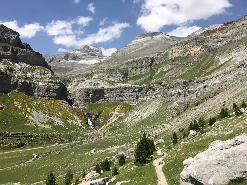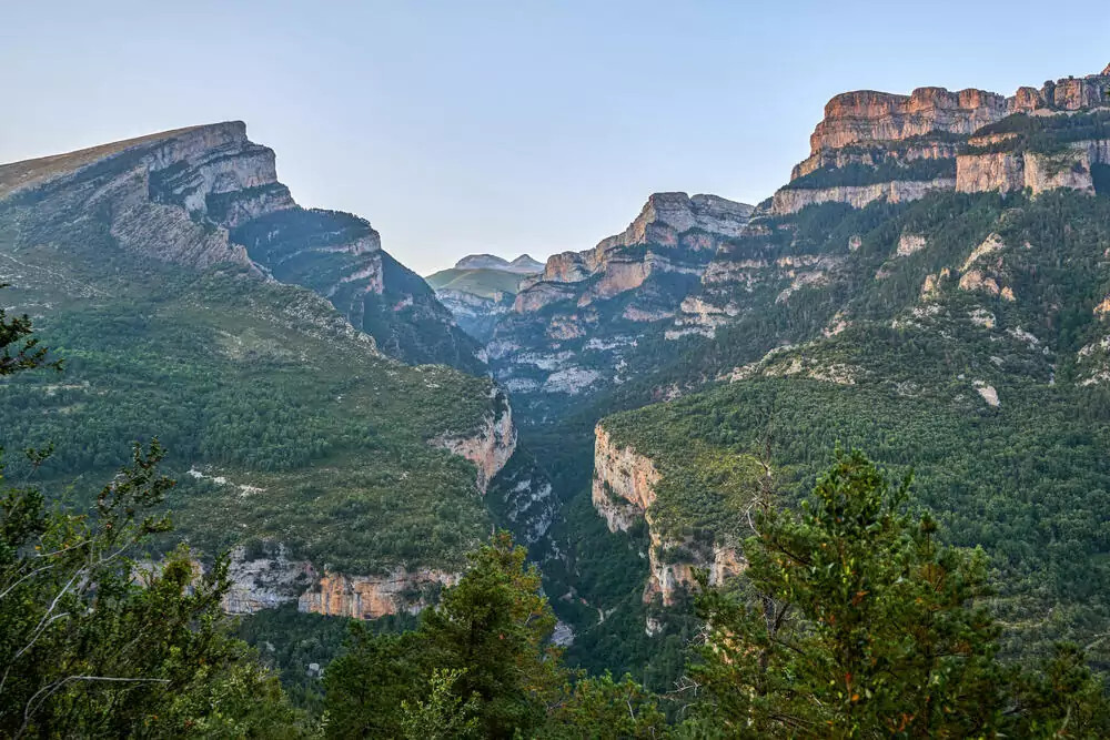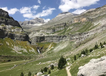 7. Tag: Im Ordesa-NationalparkAm zweiten Tag im Ordesa-Nationalpark führt unser Weg von der Góriz-Hütte über einen Pass 800 Höhenmeter hinunter in den wildromantischen Añisclo-Canyon. Zunächst breit und offen, verengt er sich später zu einer spektakulären Schlucht mit unzähligen Wasserfällen – ein einmaliger Anblick. Wir steigen auf der gegenüberliegenden Seite wieder hinauf und wandern über Wiesen und teilweise auf der Canyonkante zum Endpunkt (GZ: 6 Std., + 450 m, - 800 m). Anschließend Transfer nach Aínsa (1 Ü).