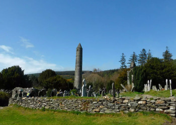 6. Tag: Kloster GlendaloughWanderung zur beeindruckenden frühchristlichen Klosteranlage Glendalough (gälisch: das Tal der 2 Seen) aus dem 6. Jahrhundert mit ihrem bekannten Hochturm und zur alten Bleimine im Tal des Glenalo River (GZ: 4 1/2 Std., +/- 350 m).