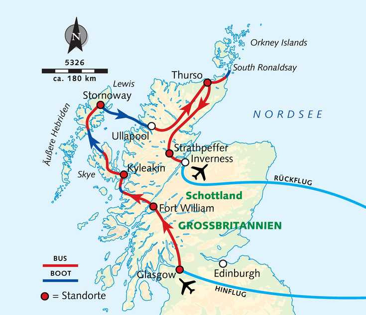 - Fährüberfahrt auf die Isle of Skye und auf die Orkneys und zurück