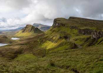 5. Tag: Quiraing-Walk und Insel LewisVon eigenwilliger Schönheit präsentieren sich die Felsnadeln, -kegel und -zinnen des Quiraing-Massivs im Norden von Skye. Wir stehen früh auf, um möglichst viel von dieser beeindruckenden Szenerie zu erleben (GZ: 3 Std., +/- 250 m). Am frühen Nachmittag nehmen wir die Fähre von Uig auf Skye zur Insel Harris. Von dort ist es noch etwa eine Stunde Fahrt zu unserem Hotel in Stornoway, dem Hauptort der Insel Lewis (2 Ü).