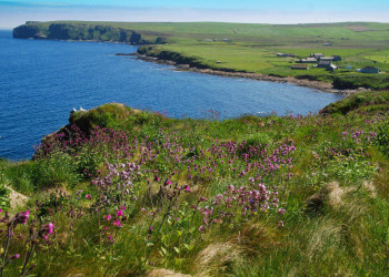 8. Tag: South Ronaldsay im Süden der OrkneysIn nur 40 Min. bringt uns die Fähre nach Burwick, dem Hafen auf der südlichsten Orkney-Insel South Ronaldsay. Wir wandern entlang einer wunderbaren Klippenlandschaft über Strände und Wiesen, vorbei an Grabkammern aus der Megalithzeit, begleitet von unzähligen Seevögeln (GZ: 4 1/2 Std., leichtes Auf und Ab).
