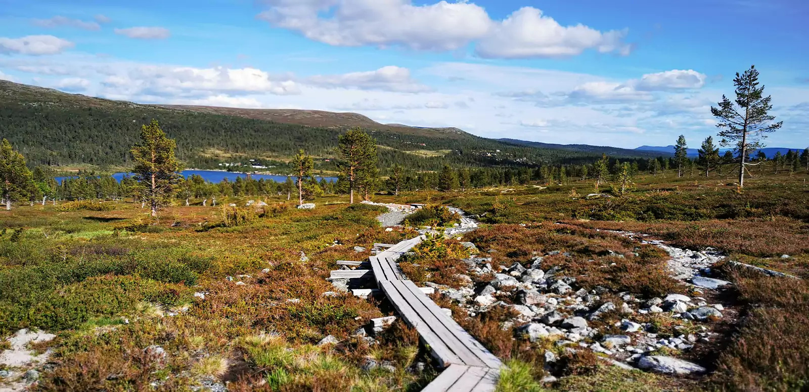 2. Tag: Die blaue und die grüne GrenzeMit dem Boot fahren wir am Morgen über den Grövelsjön. Unbemerkt erreichen wir Norwegen. Auf dem Linnésteig wandern wir durch die Natur des Femundsmarka-Nationalparks zurück nach Schweden. Schon der bekannte Botaniker war Mitte des 18. Jahrhunderts von der grandiosen Natur begeistert (GZ: 2 1/2 Std., +/- 290 m). In der Grövelsjön Sjöstugan (Seestube) können wir bei Kaffee und Waffeln (fakultativ) die erste Wanderung Revue passieren lassen.