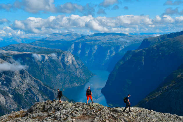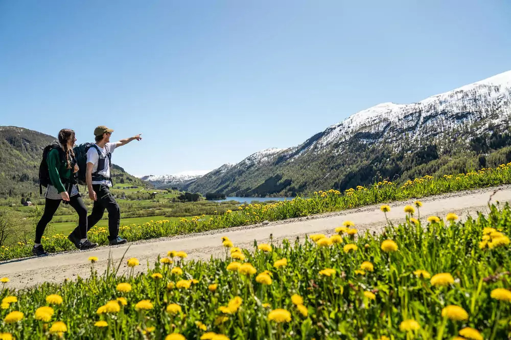 9. Tag: Die KönigsetappeVom idyllischen Jorunddalen geht es hinauf zum Bakkanosi. Von einer spektakulär gelegenen Felskanzel schauen wir auf Berge und Fjord wie auf eine andere Welt – diese Kulisse ist fast nicht zu toppen (GZ: 7 Std., +/- 880 m).