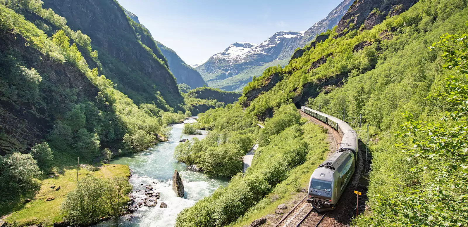 7. Tag: Ein Tag voller HöhepunkteDirekt vom Hotel fahren wir mit der berühmten Flåmbahn hinab zum gleichnamigen Ort. Ein Shuttlebus bringt uns zum beeindruckenden Aussichtspunkt Stegastein. Mit einem nachhaltigen, elektrisch betriebenen Fjordschiff geht es dann zu einer zweistündigen Fahrt auf dem UNESCO-geschützten Nærøyfjord. Von Gudvangen bringt uns ein kurzer Transfer ins komfortable Myrkdalenhotel.