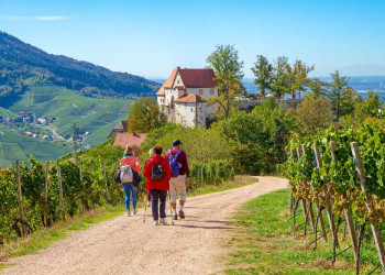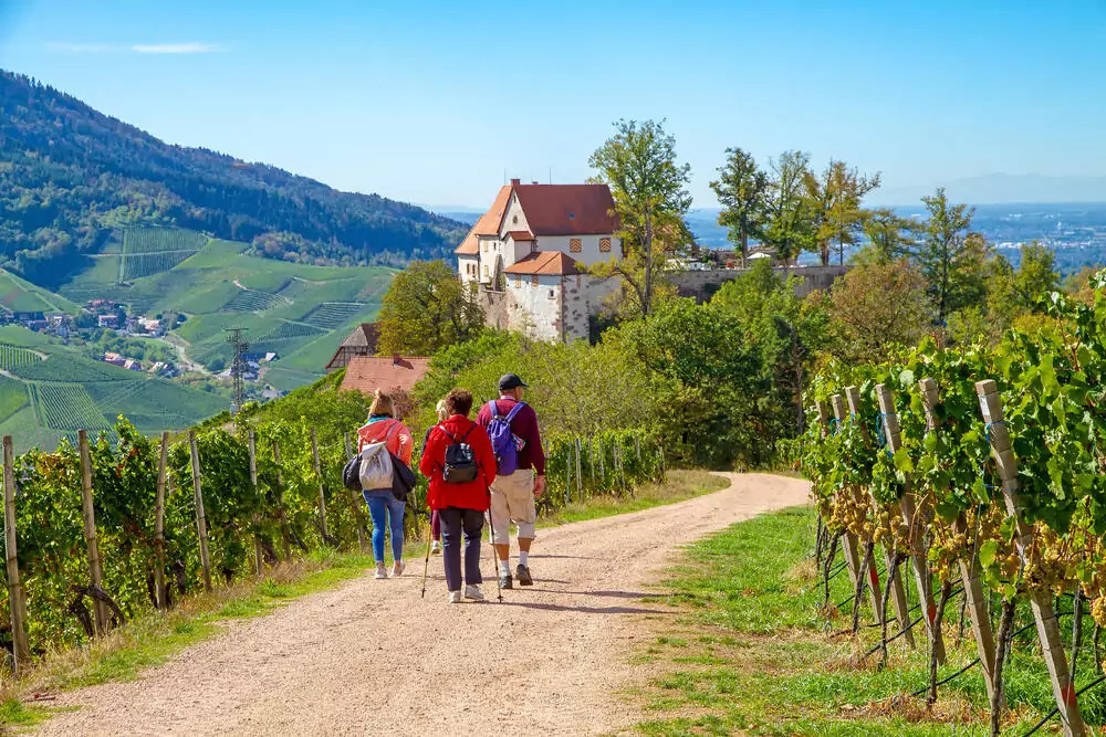 7. Tag: Sasbachwalden und Alde GottZum Finale noch einmal ein Höhepunkt für alle Sinne: Denn die Alde Gott Panoramarunde ist eine der schönsten Wanderrouten Badens. Der Weg schlängelt sich durch eine Rebenlandschaft wie aus dem Bilderbuch – dazu Fernblicke bis zur Rheinebene, auf kleine Dörfer mit roten Dächern, bis hinüber nach Straßburg (GZ: 3 1/2 Std., +/- 300 m). Wandern, Weite, Weinberge – schöner kann eine Reise nicht enden!